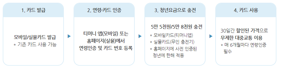 - 본사업(7.1.(월))부터 별도의 청년요금(5만 5천원, 5만 8천원)으로 충전 가능