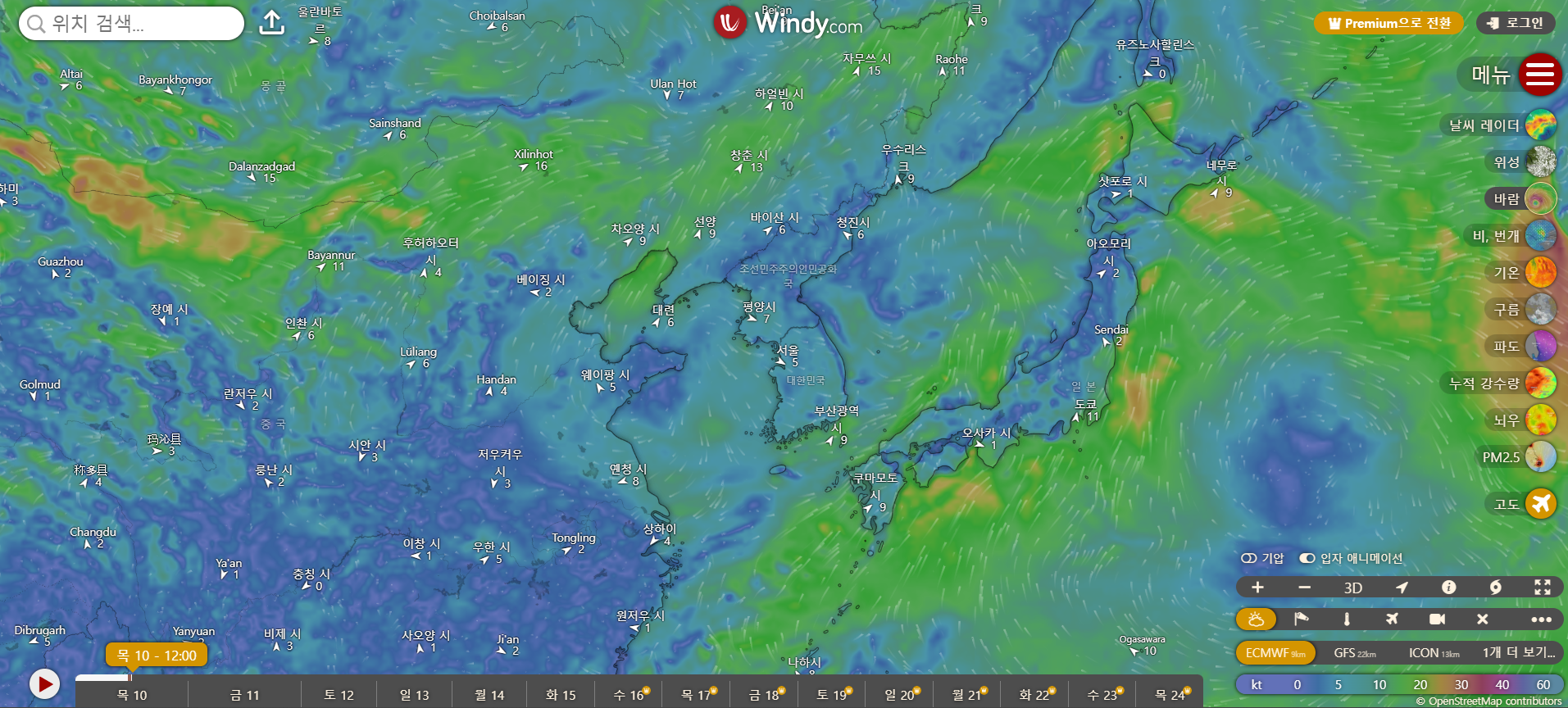 또한 태풍 정보는 Windy에서 실시간 확인 가능합니다.