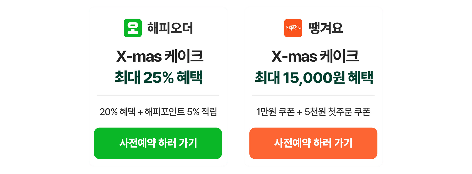 ✔ 땡겨요, 카카오 예약하기, 배달의민족: 11/25(월)~12/19(목)