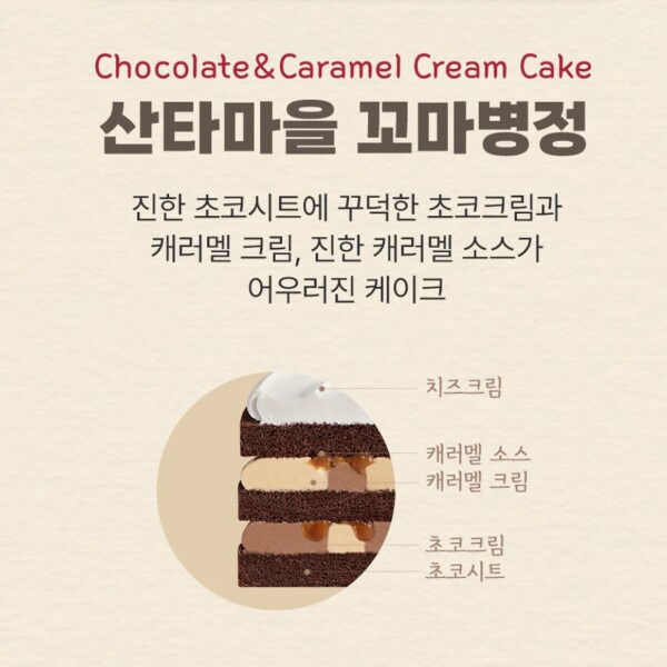 🎂진한 초코시트에 초코 & 캐러멜 크림이 어우러진 #산타마을꼬마병정