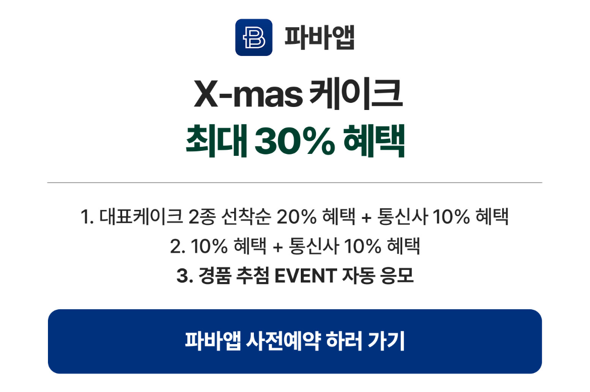 파리바게뜨 크리스마스 케이크 사전예약방법