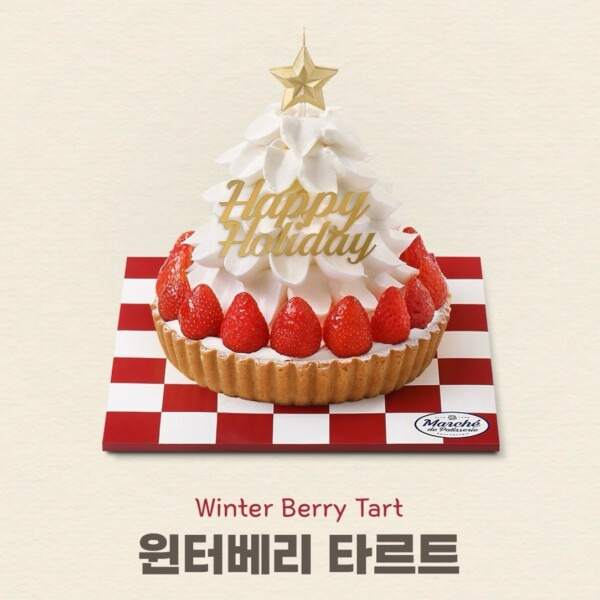윈터베리 타르트는 가격이 39,000원에서 21,200원으로 할인되어, 크리스마스 분위기를 만끽할 수 있는 케이크입니다. 지름 17cm의 바삭한 타르트 위에 화이트 위싱 트리와 생딸기가 풍성하게 장식되어 있어, 시각적으로도 매우 매력적이에요. 생크림과 바닐라 치즈크림이 조화를 이루어, 부드러운 식감과 함께 상큼한 맛을 제공합니다.