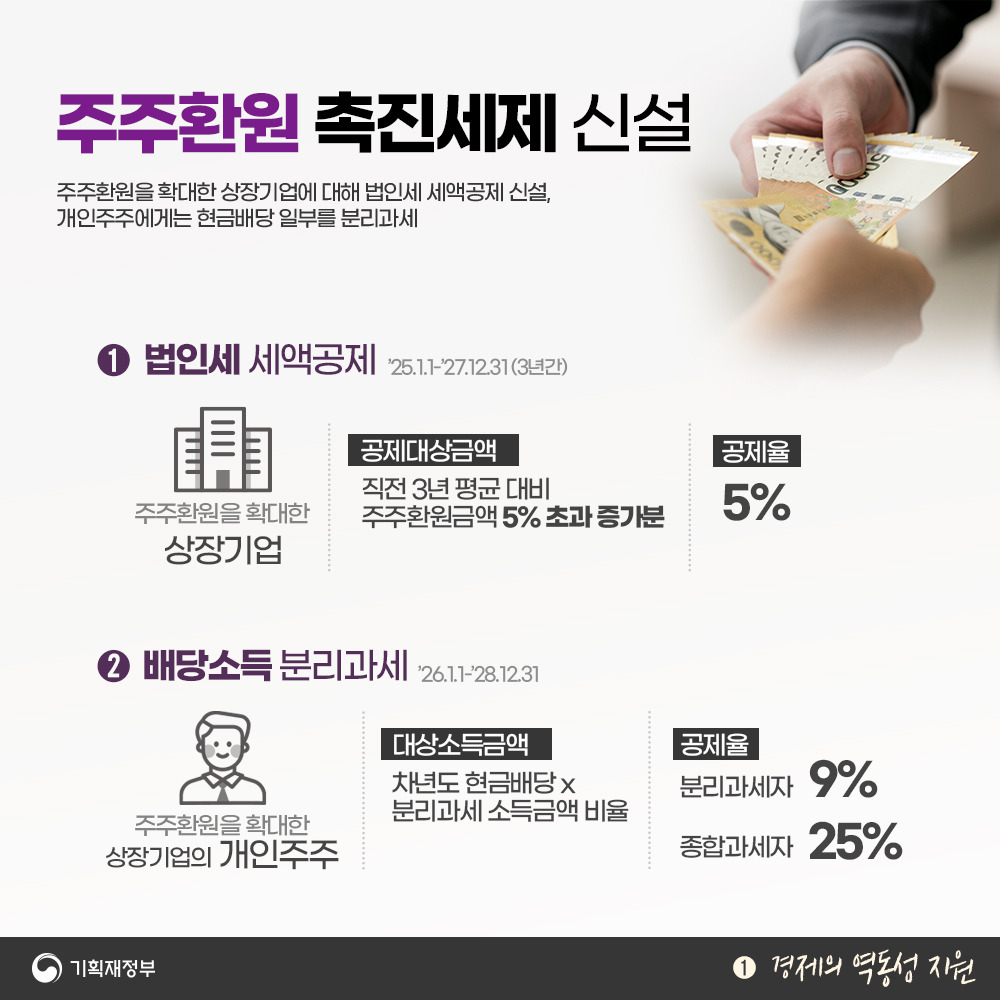 1️⃣ 주주환원 촉진세제 신설(법인세 세액공제, 배당소득 분리과세)