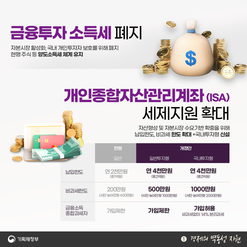 2️⃣ 금융투자소득세 폐지, ISA 세제지원 확대