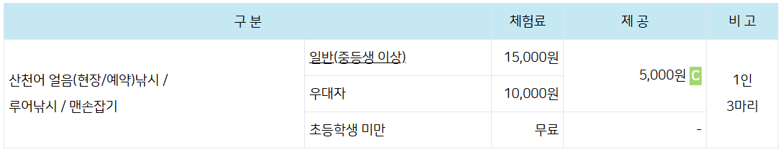 3. 화천 산천어축제 체험료